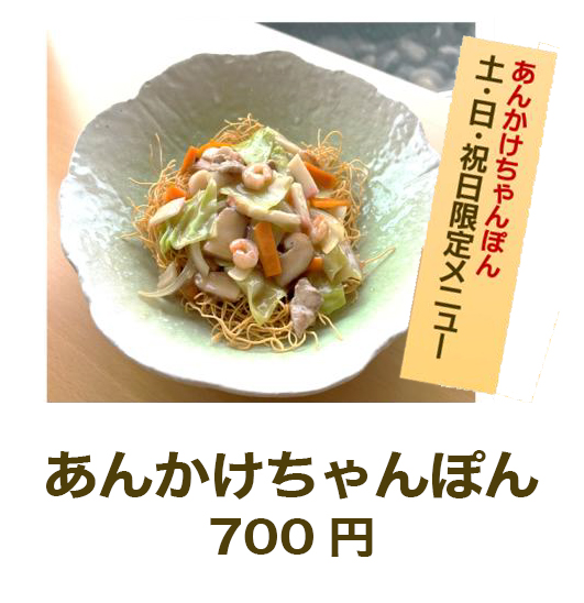 ●あんかけちゃんぽん…700円(※土・日・祝日限定) 彩りポップなあんかけちゃんぽん