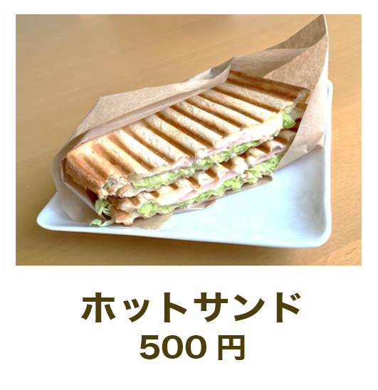 ●ホットサンド…500円 新鮮野菜・ハム・チーズのサンド